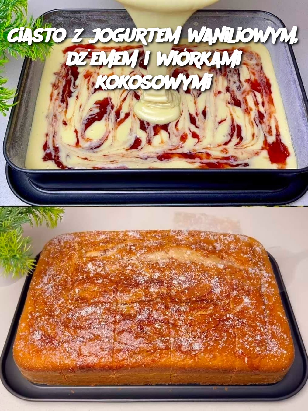 Ciasto z jogurtem waniliowym, dżemem i wiórkami kokosowymi