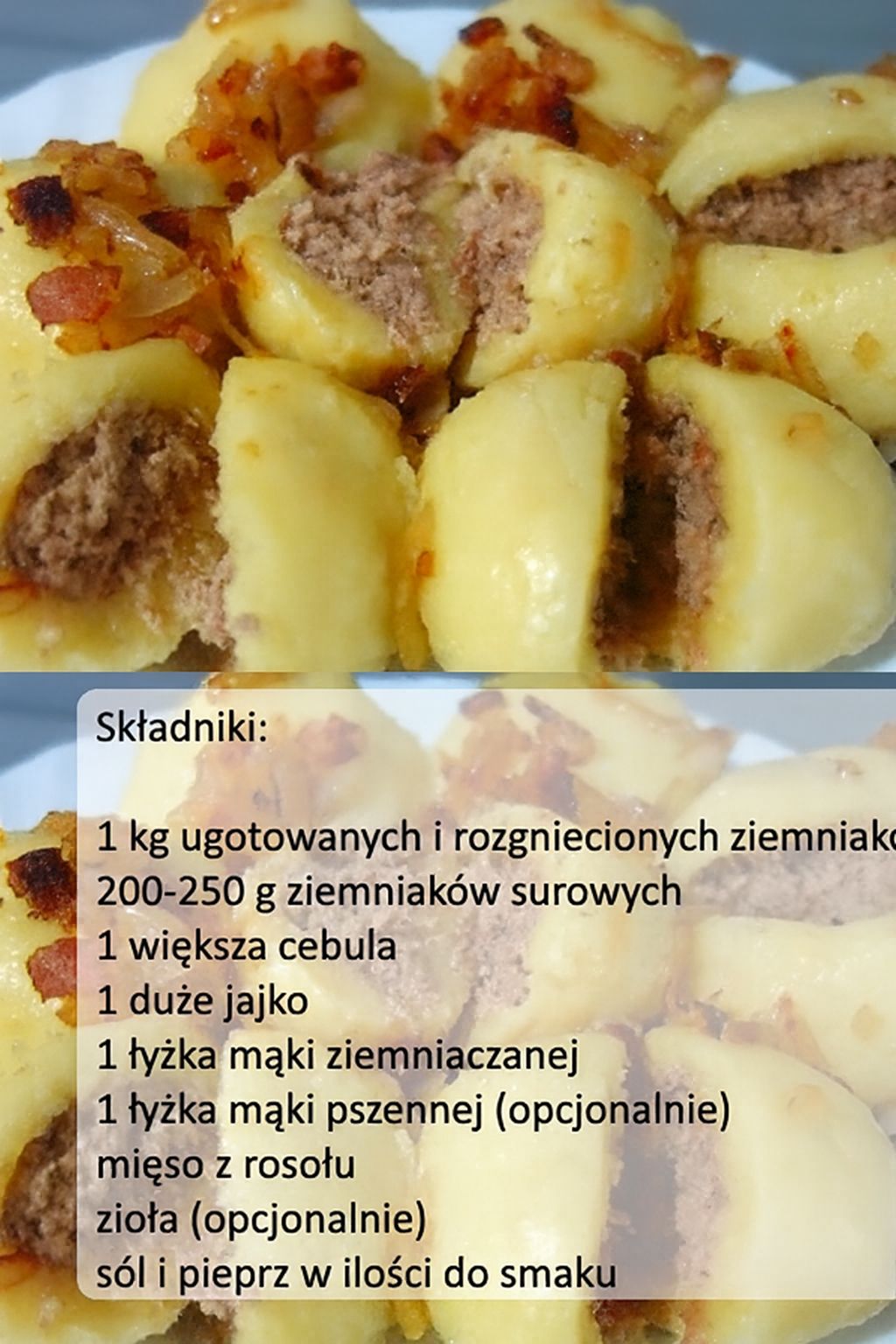 Pyzy ziemniaczane z delikatnym mięsnym farszem
