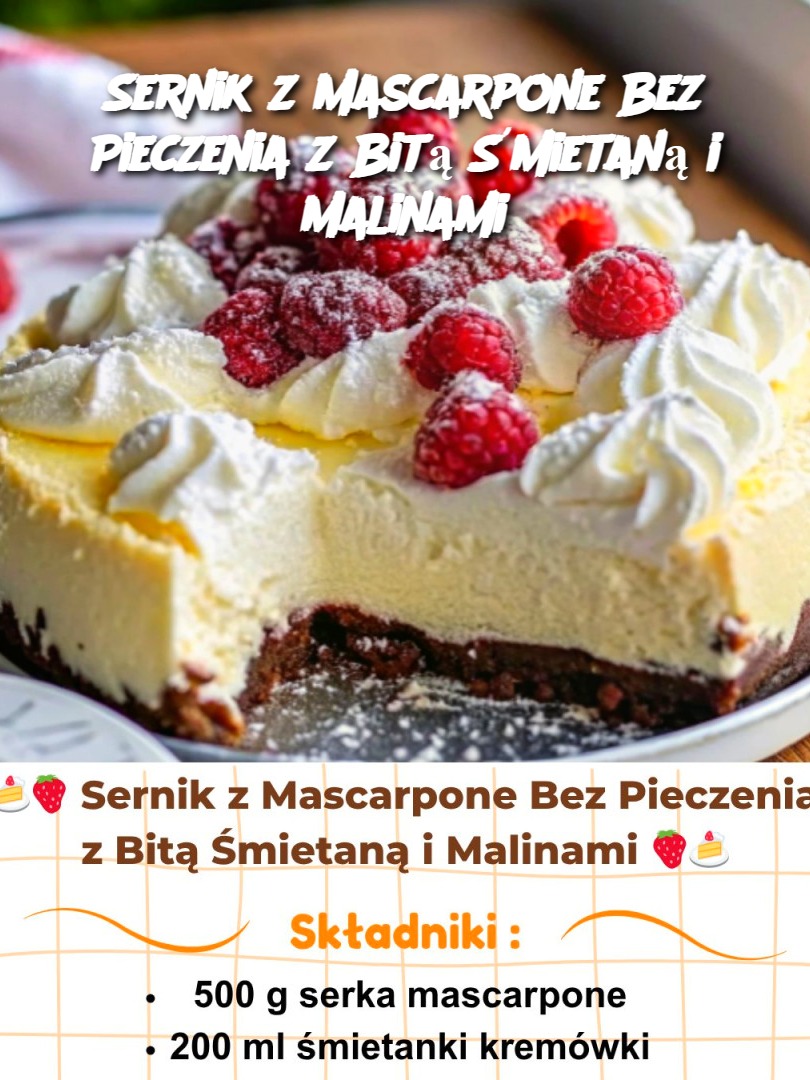 Sernik z Mascarpone Bez Pieczenia z Bitą Śmietaną i Malinami